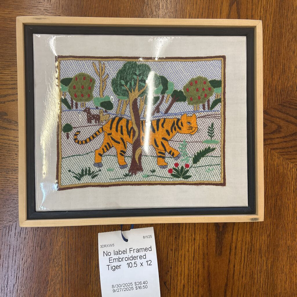 No label Framed Embroidered Tiger 10.5 x 12 Multi