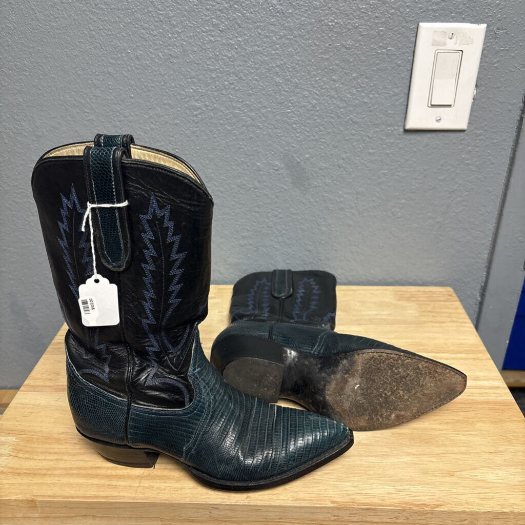 Larry Mahan Cowboy Boots 7 Black Teal
