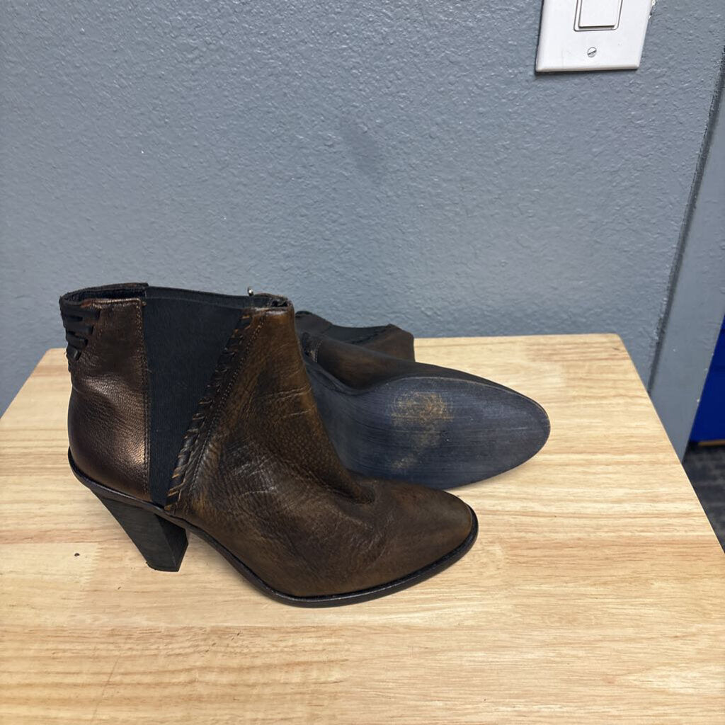 Matisse Heeled Booties 7 Brown Copper Metallic