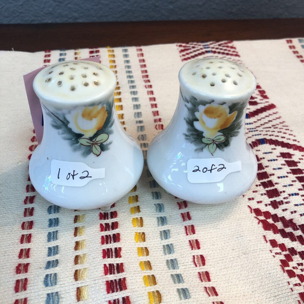Un readable Vintage S/P Shakers Set of 2 Cream/yellow/green