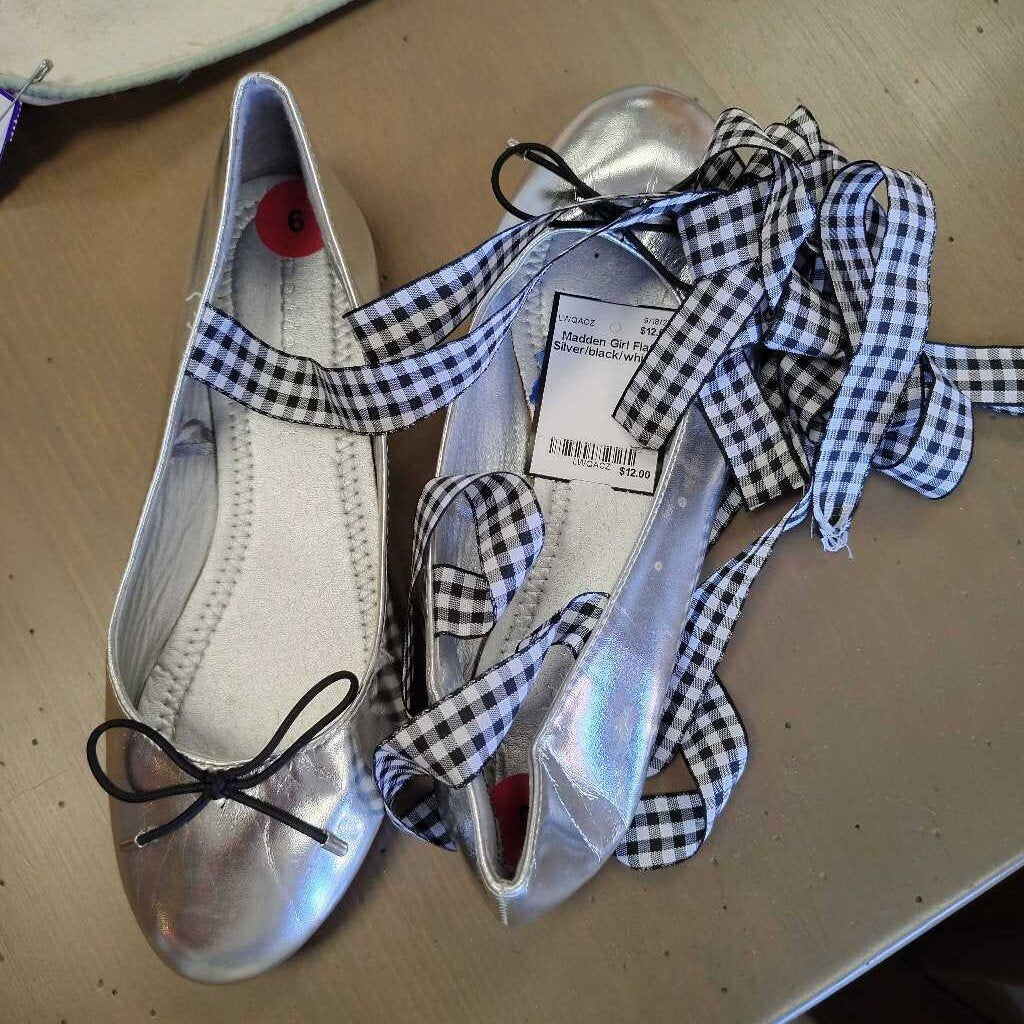 Madden Girl Flats 6 Silver/black/white