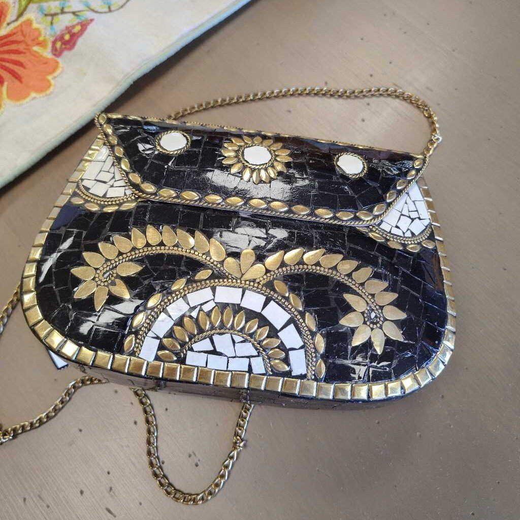 Antik Kraft Metal Crossbody Bag 8 x 5 x 2 Black Gold