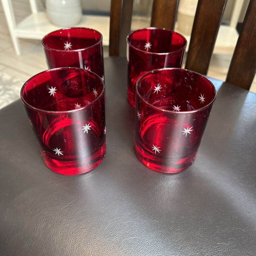 no label Glass tumbler set 3 3/4"h x3"d Red