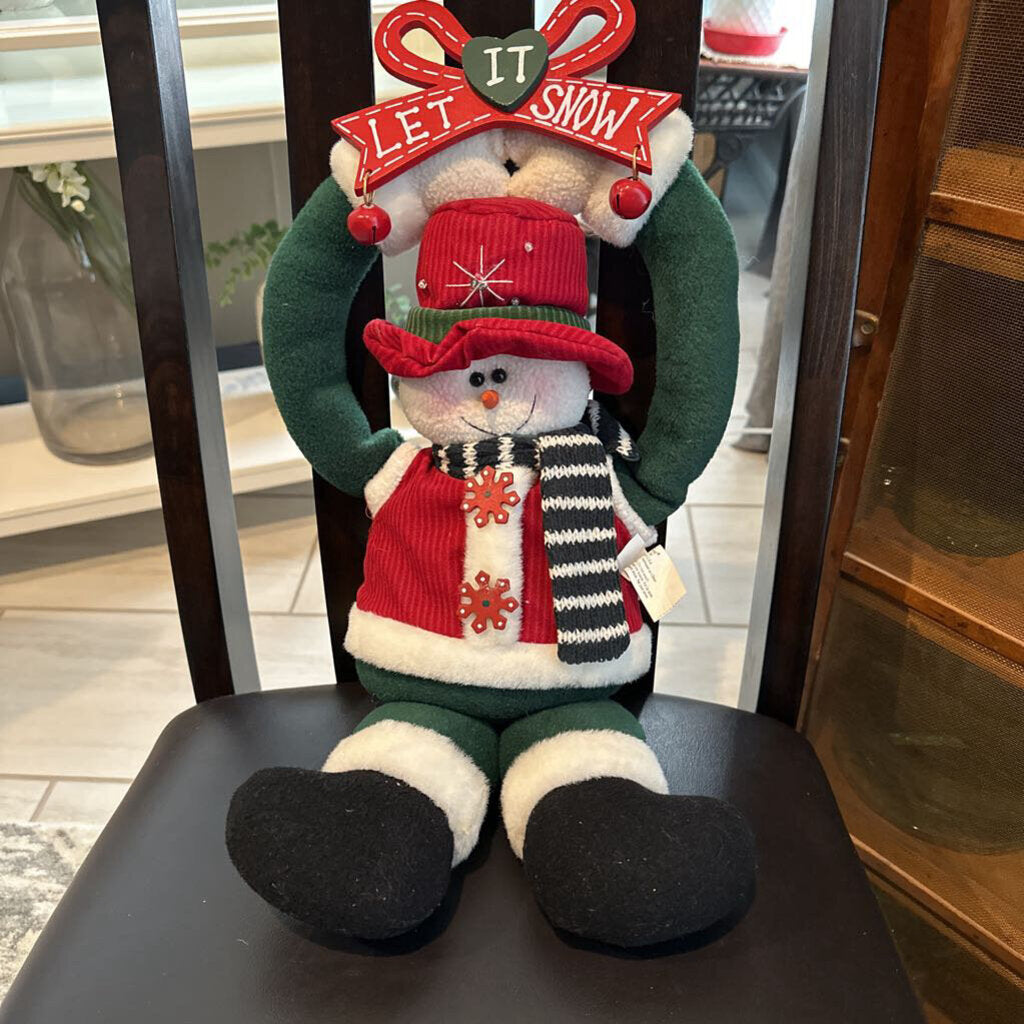 Santa's Best Soft Sculpture hanging snowman 24"t Red multi