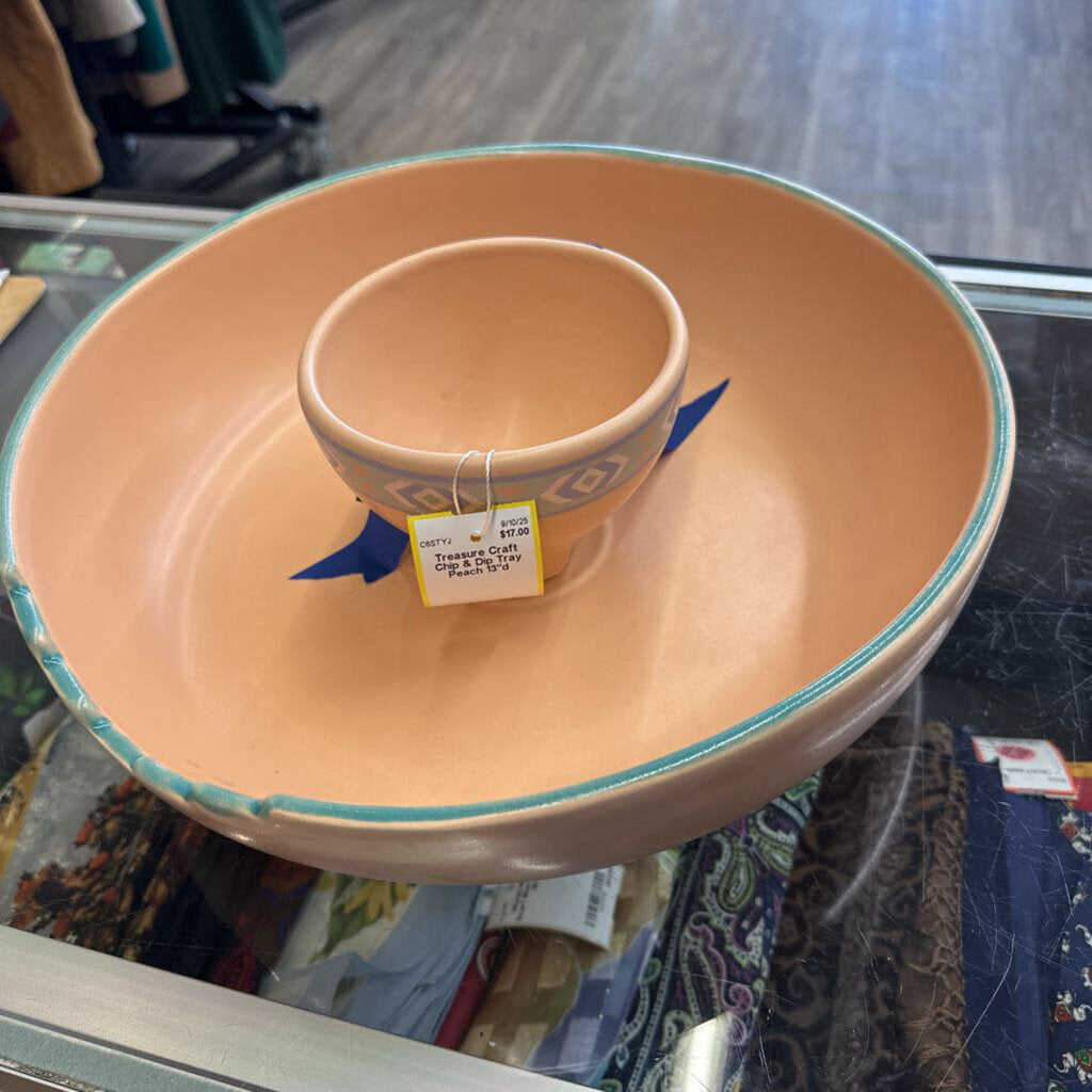 Treasure Craft Chip & Dip Tray 13"d Peach