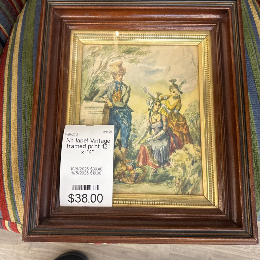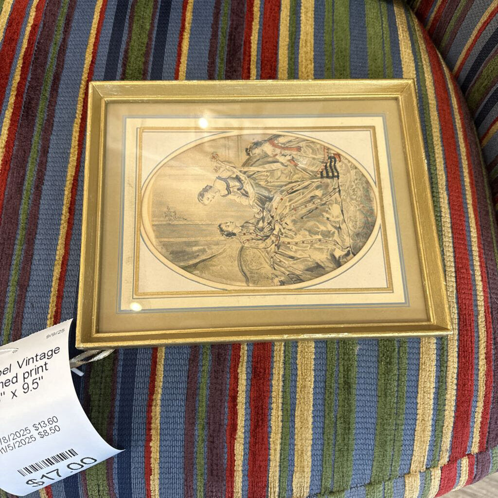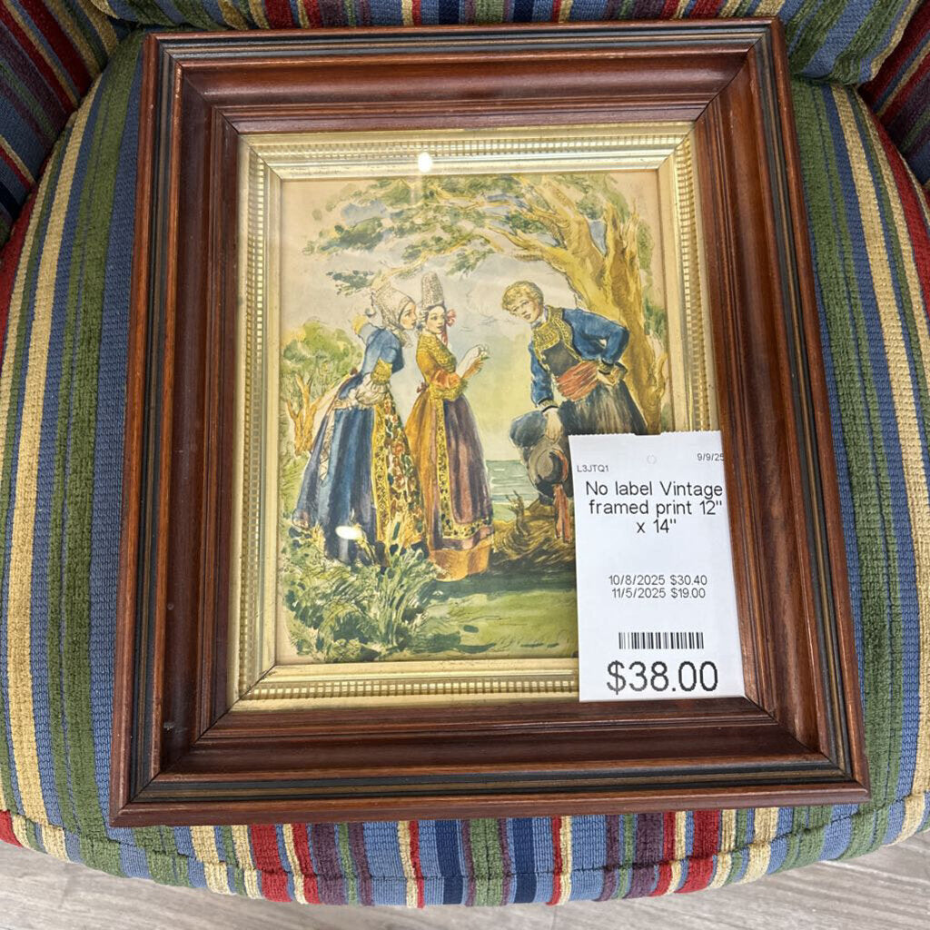 No label Vintage framed print 7.5" x 9.5" Brown multi