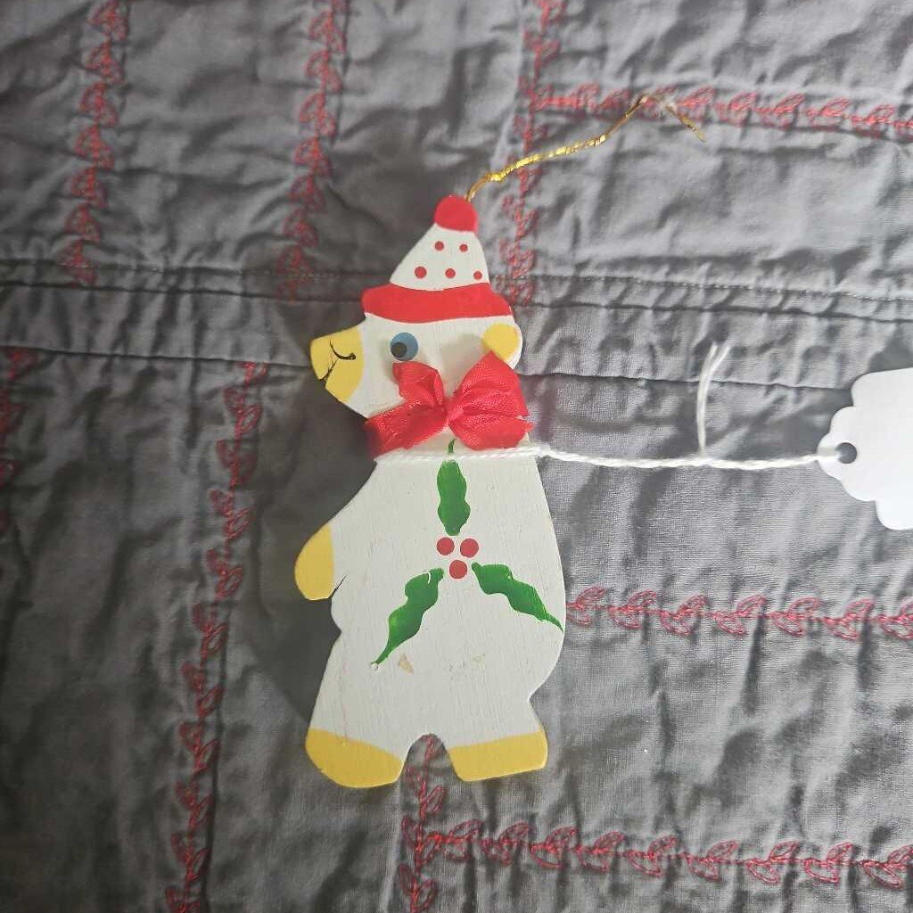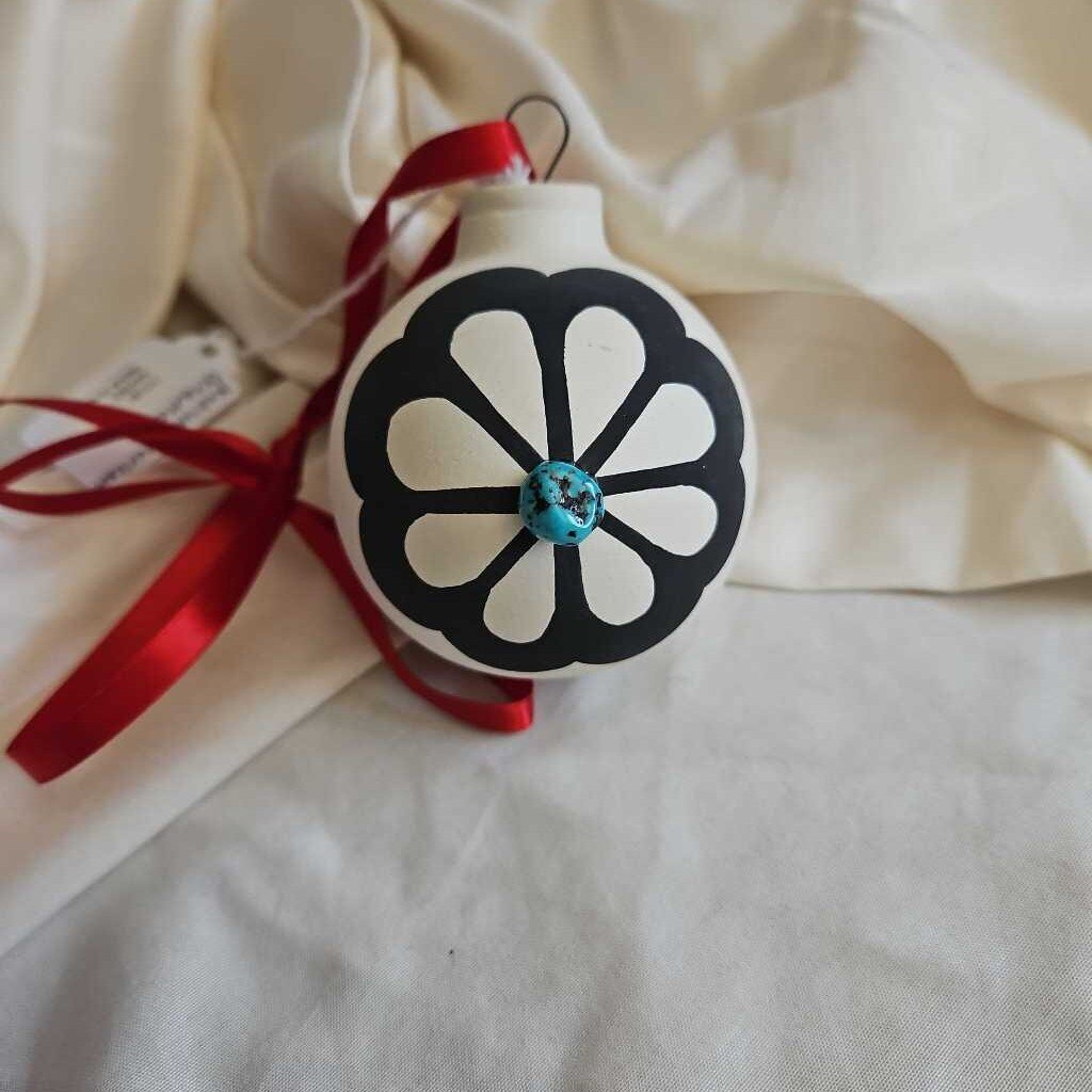 hand crafted Native American Ornament 2"D cream, black and turquiose