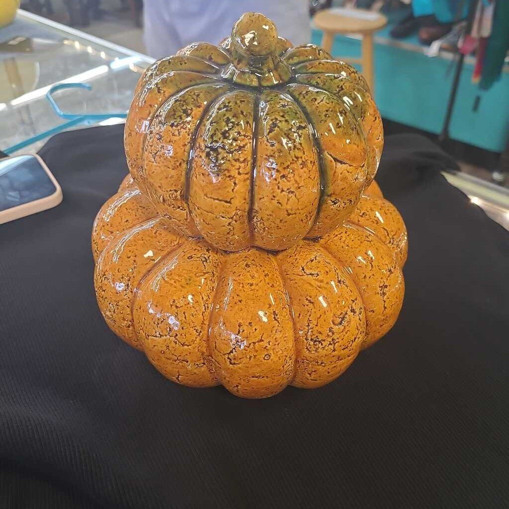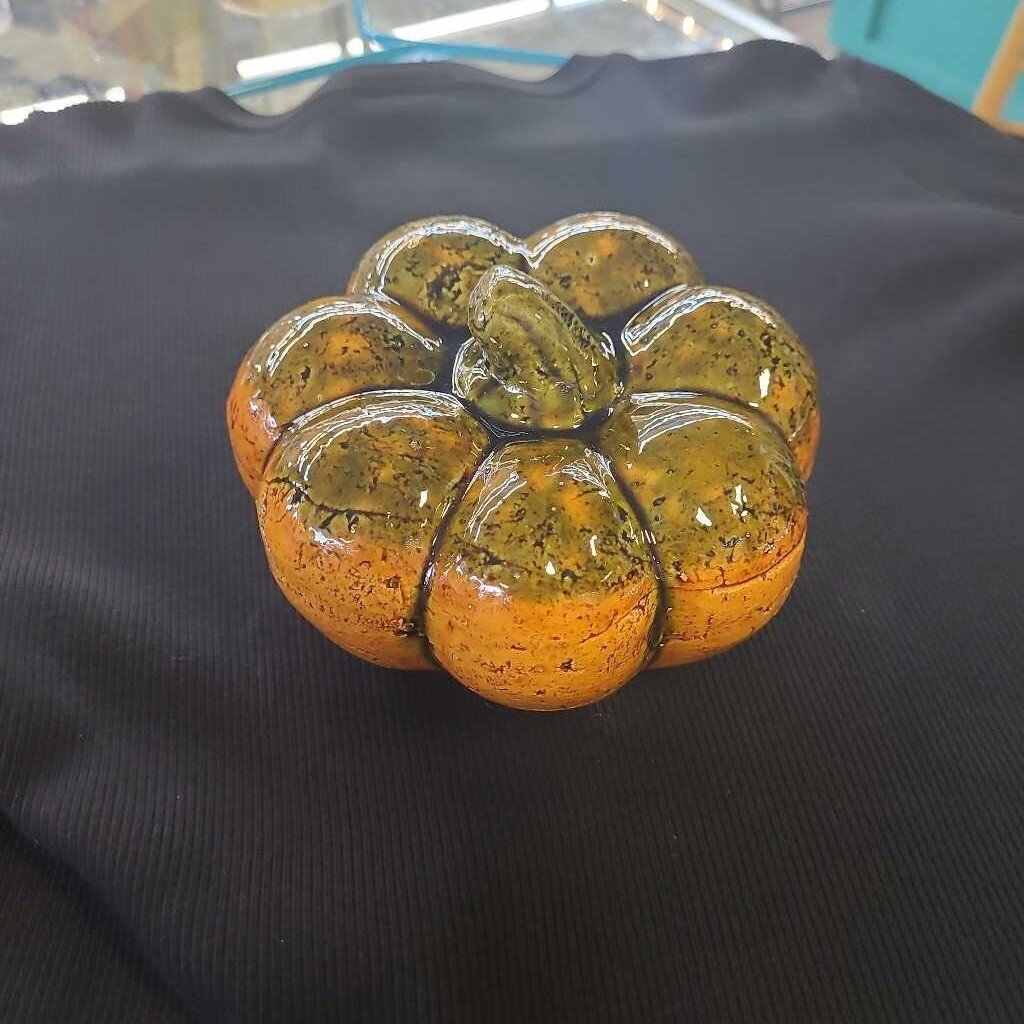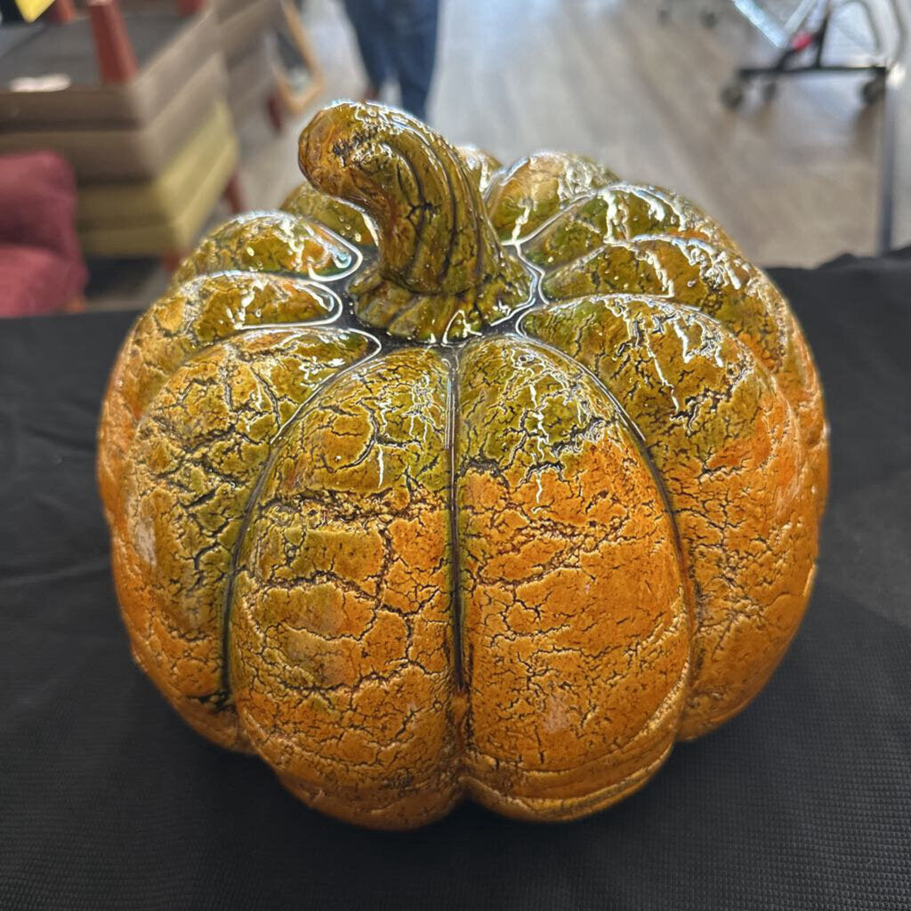 No label Ceramic Pumpkin 10 x 8 Terra Cotta Green