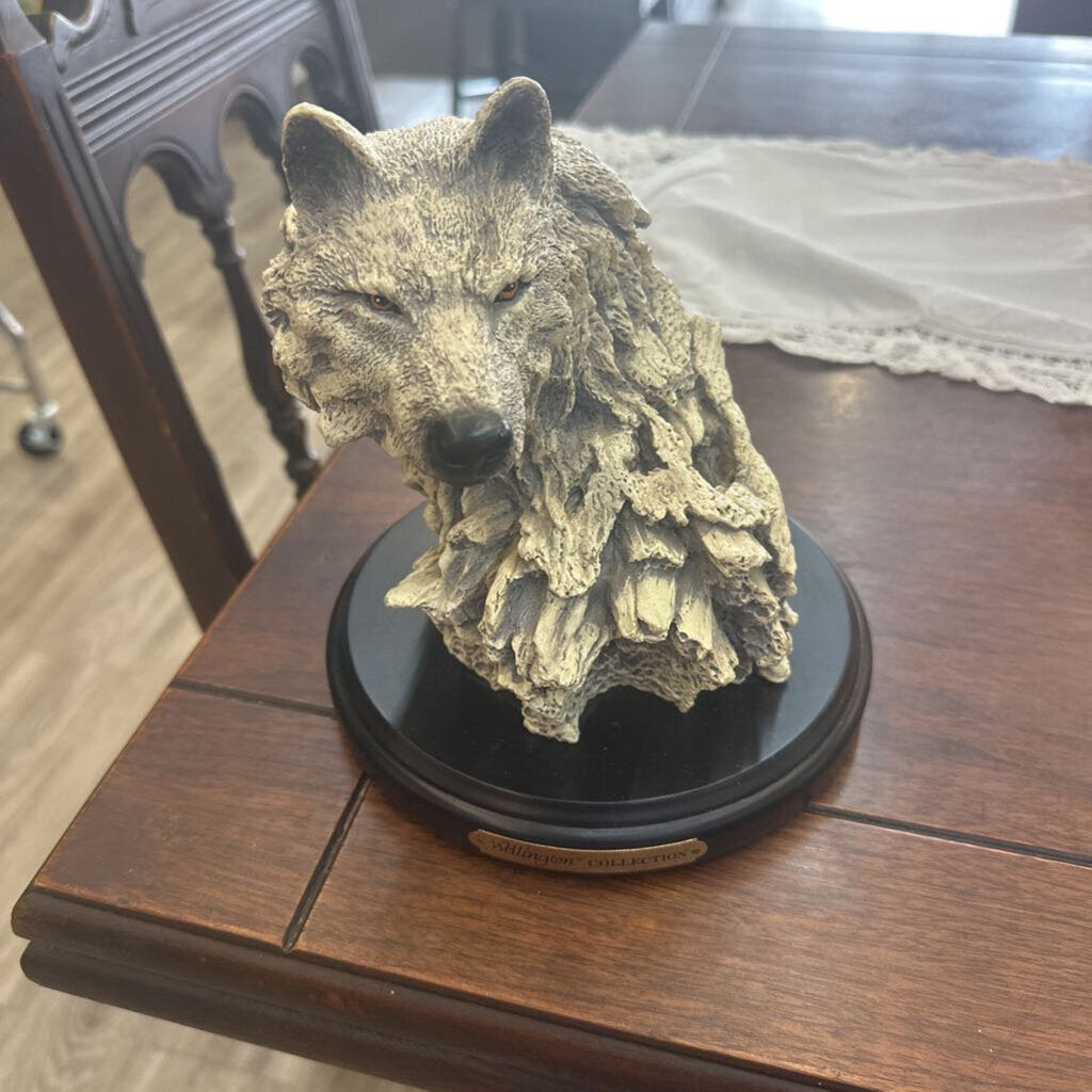 Wellington Collection Wolf Head Figurine 8 x 7 Ivory Grey
