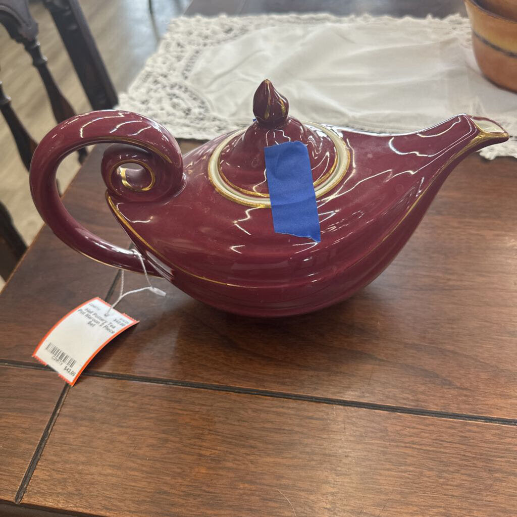 Hall Pottery Tea Pot 2 Piece Set Maroon