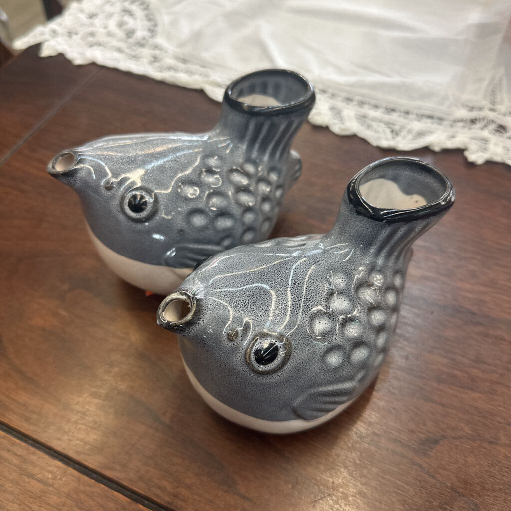 No label Pufferfish Saki Bottles Set of 2 Grey Ecru