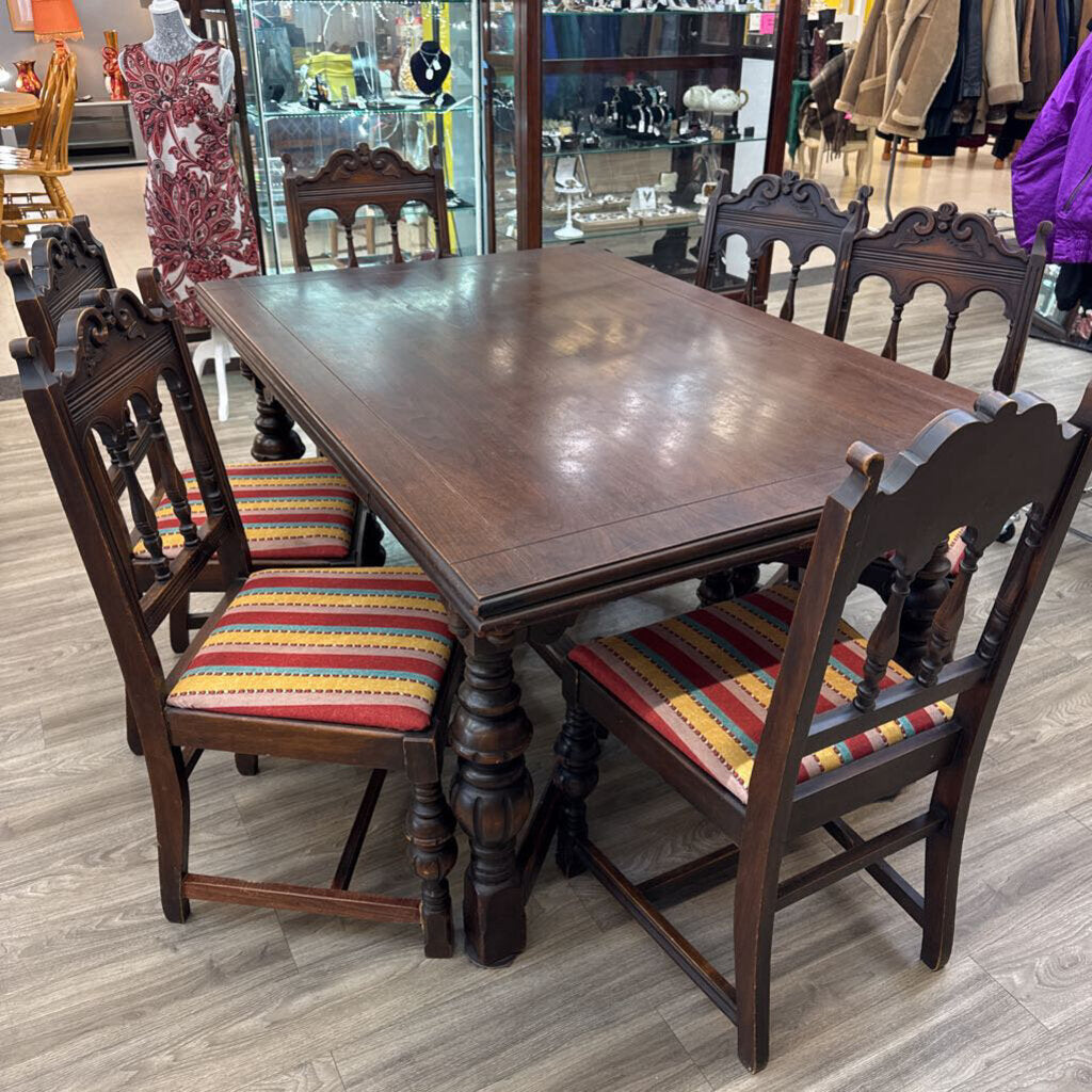 Jacobean Style table & chairs 60"l 40"w dark brown