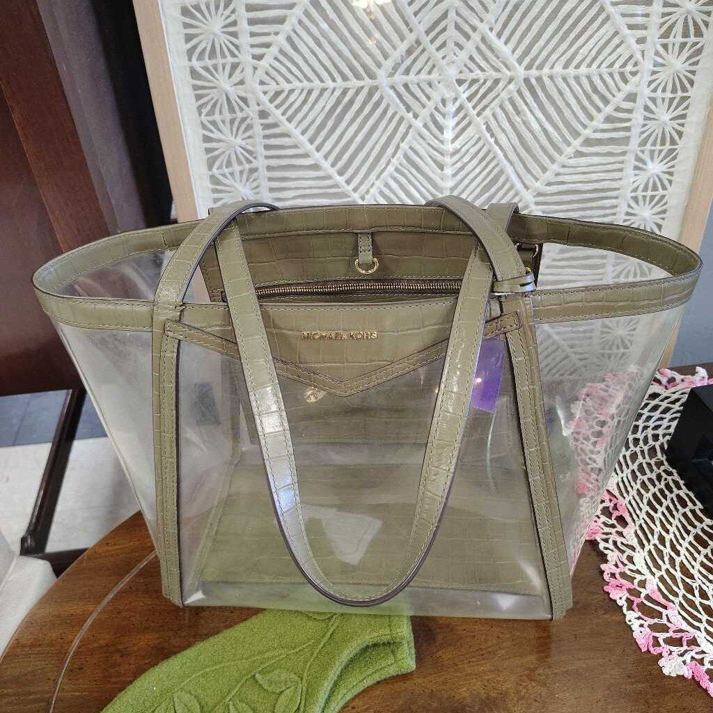 Michael Kors Clear Tote Bag 11 x 16 x 7 Green Clear