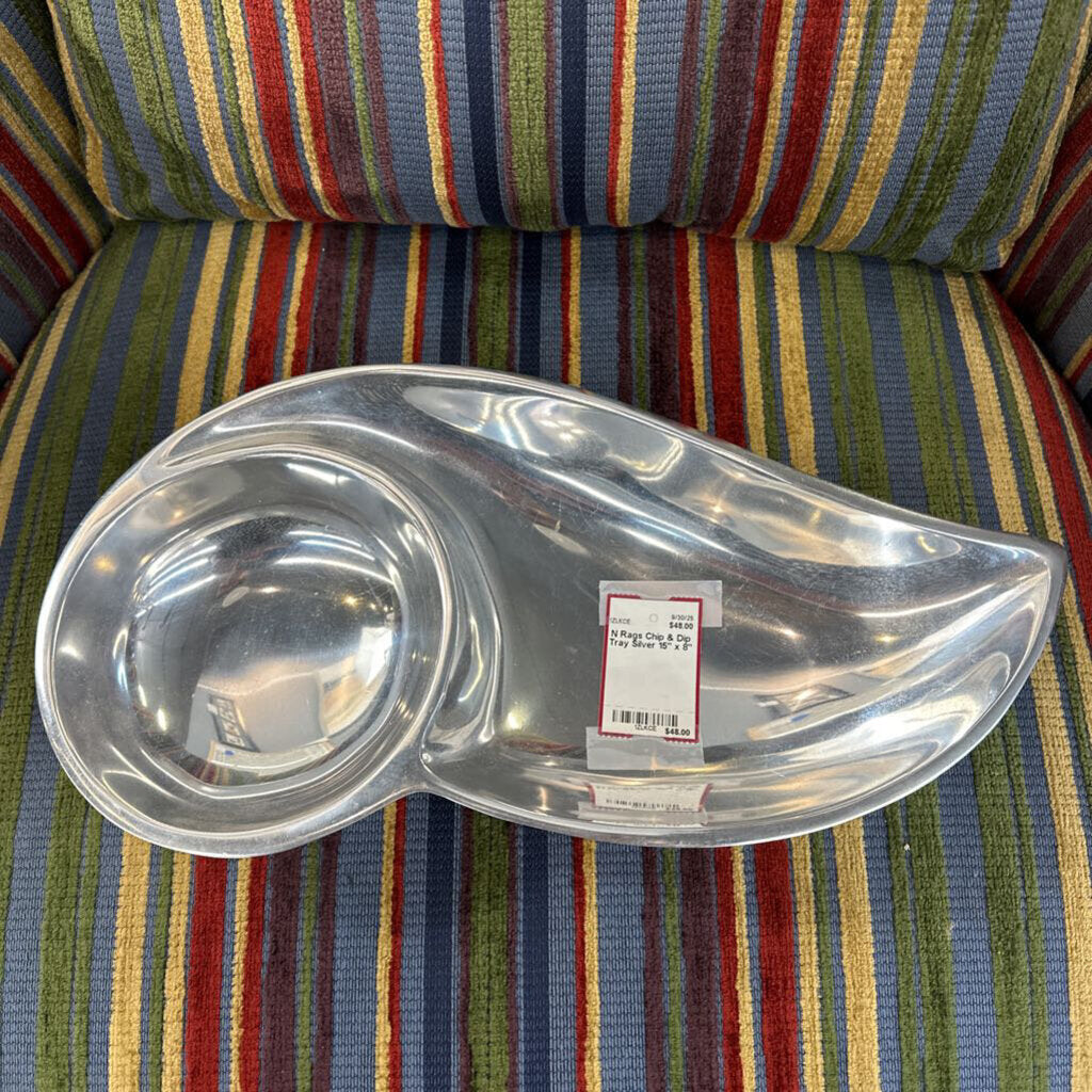 N Rags Chip & Dip Tray 15" x 8" Silver