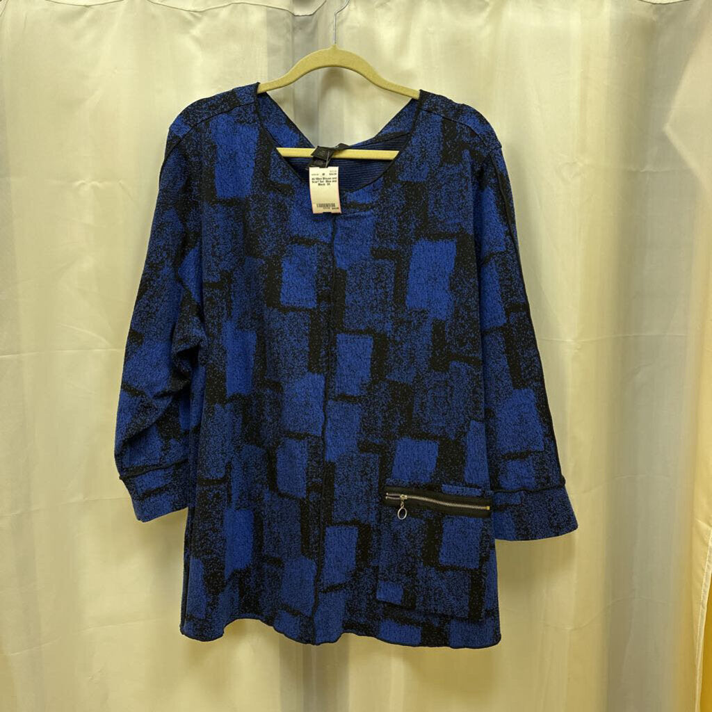 Ali Miles Blouse and Scarf Set 3X Blue and Black