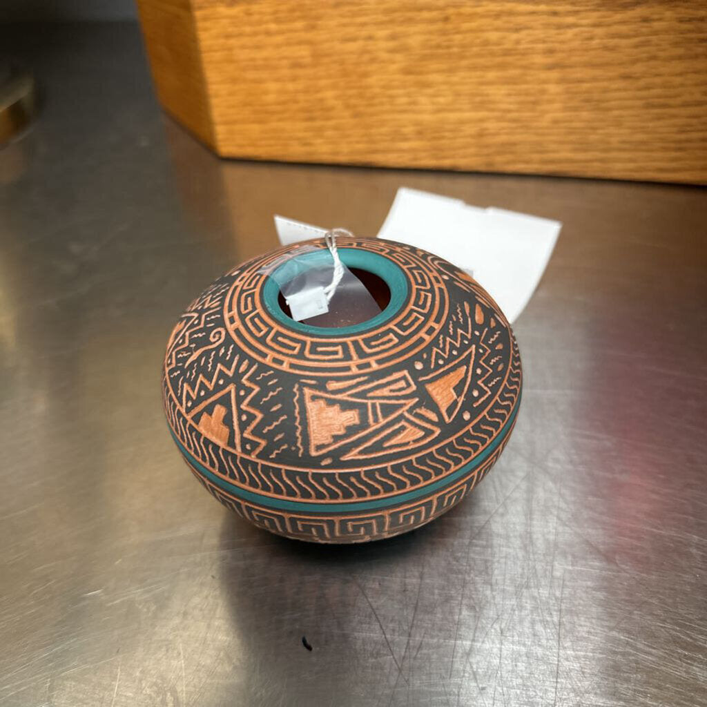Dennis Charlie Clay Pottery Vase 3"t Brown multi