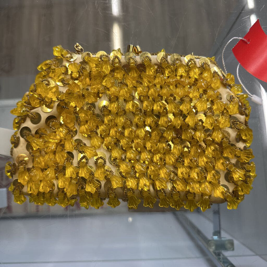 No label Beaded Bag 8 x 5 Ivory Yellow