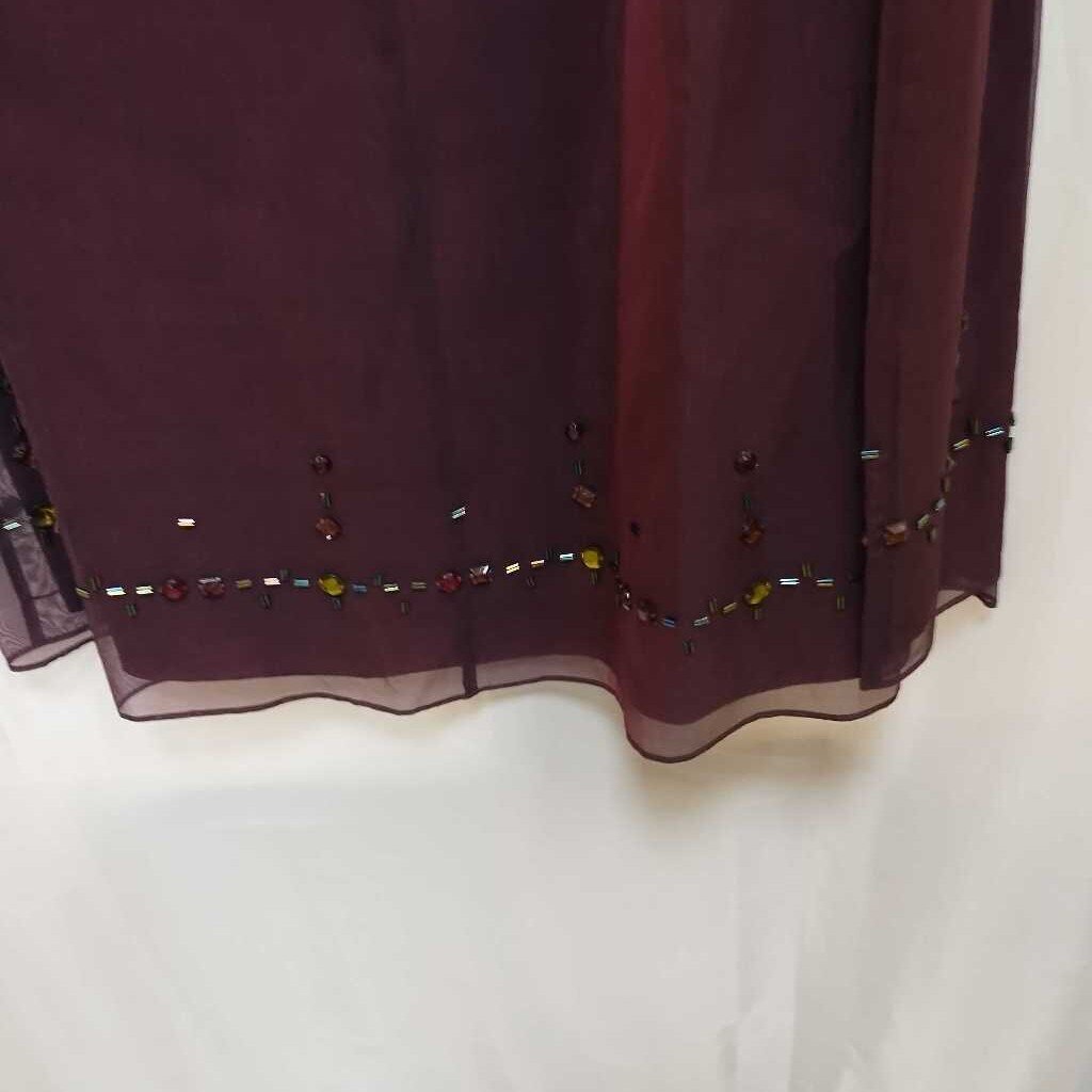 Long A-line maxi skirt in plum with beaded accents on hem, new with tags.