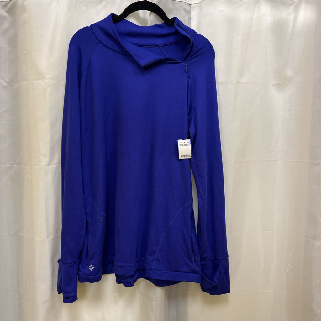 Long sleeve pull over athletic knit top with side zipper neckline and front pockets.