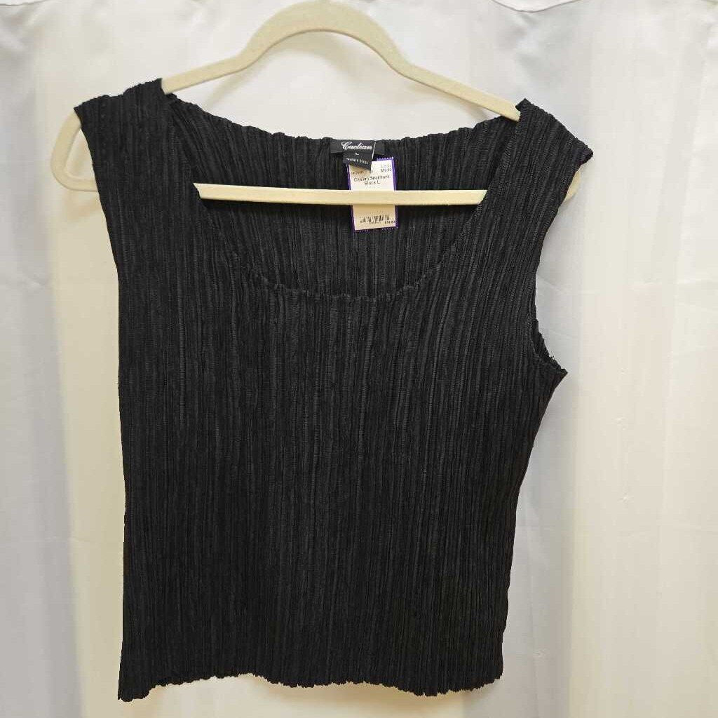 Pull on, open sleeves, round neck, stretch material. Cute! Falls past waist.