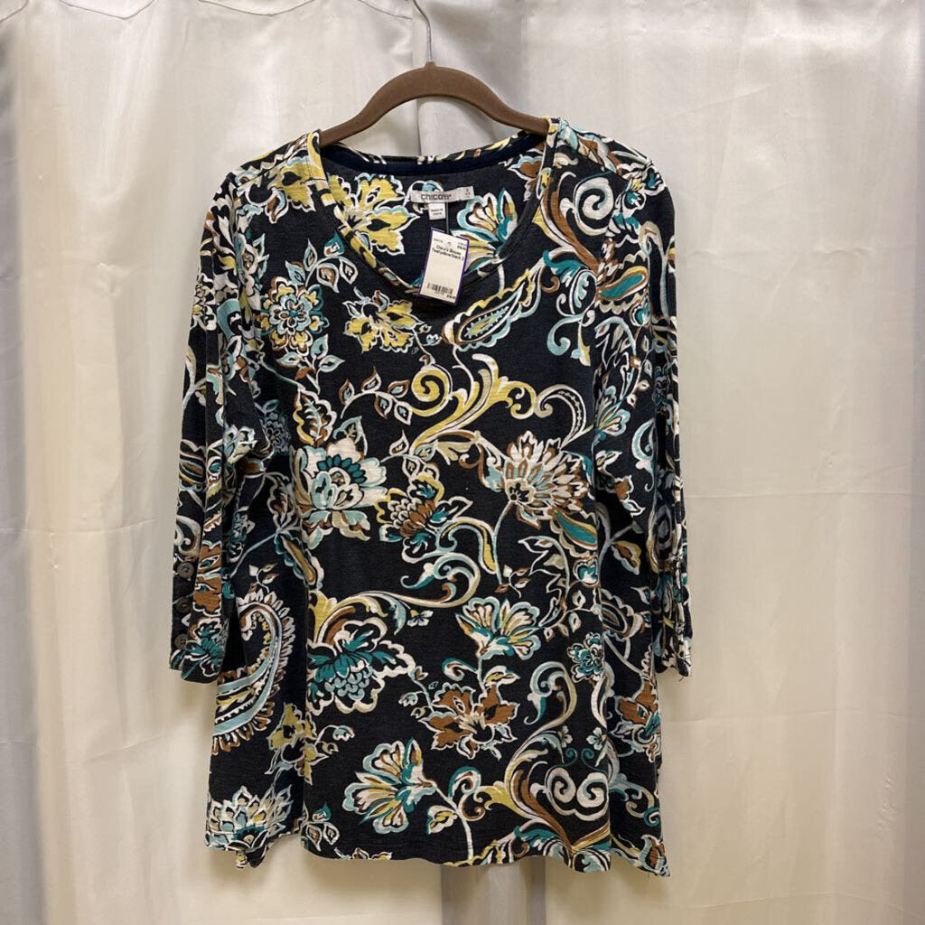 Chico's Blouse 2 Teal/yellow/black