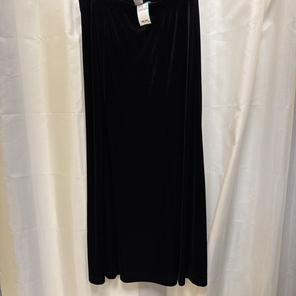 Elastic waist, polyeter & spandex. Falls to ankles.