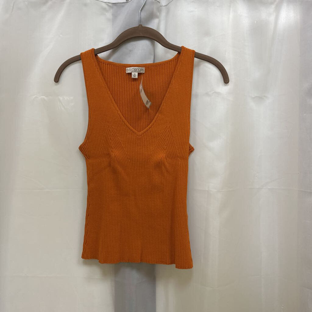Sleeveless rib knit pull over fitted tank top with V- neckline.