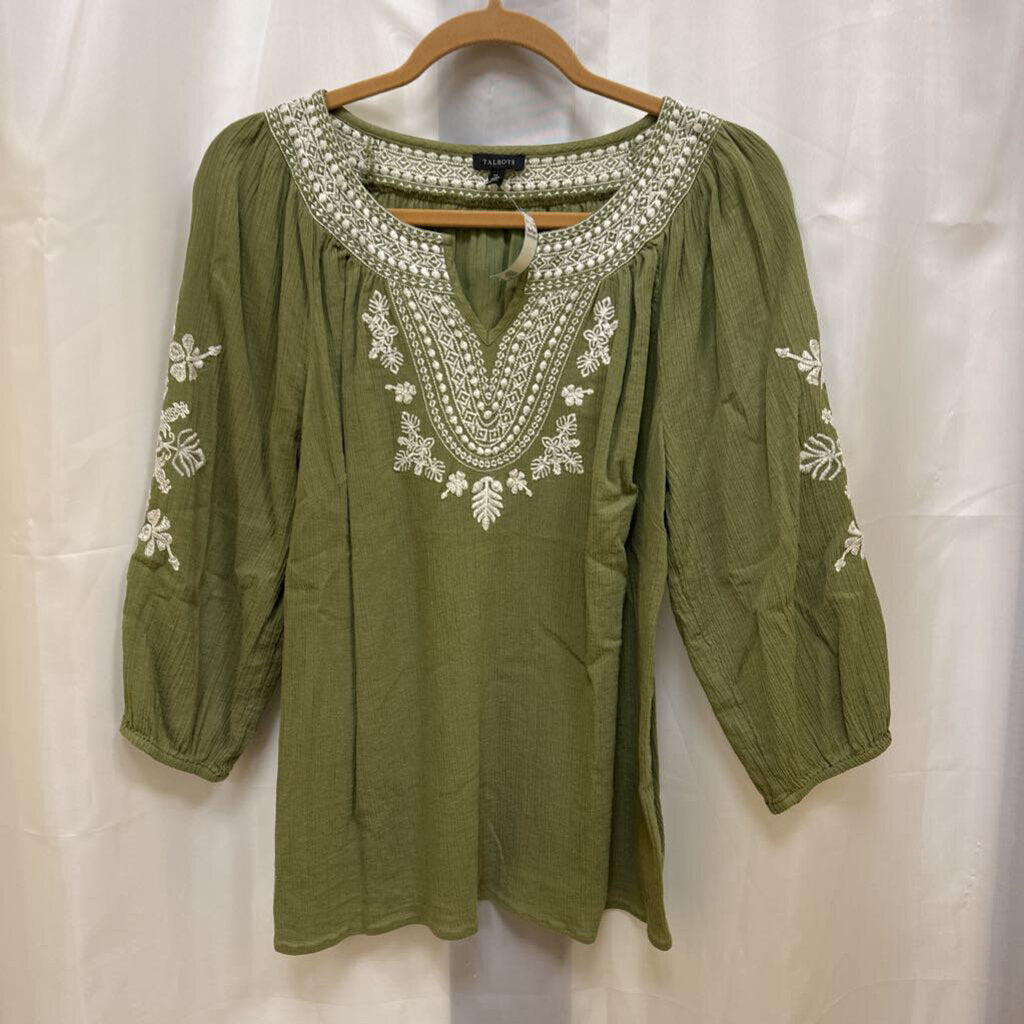 Talbots Peasant Top M Green White
