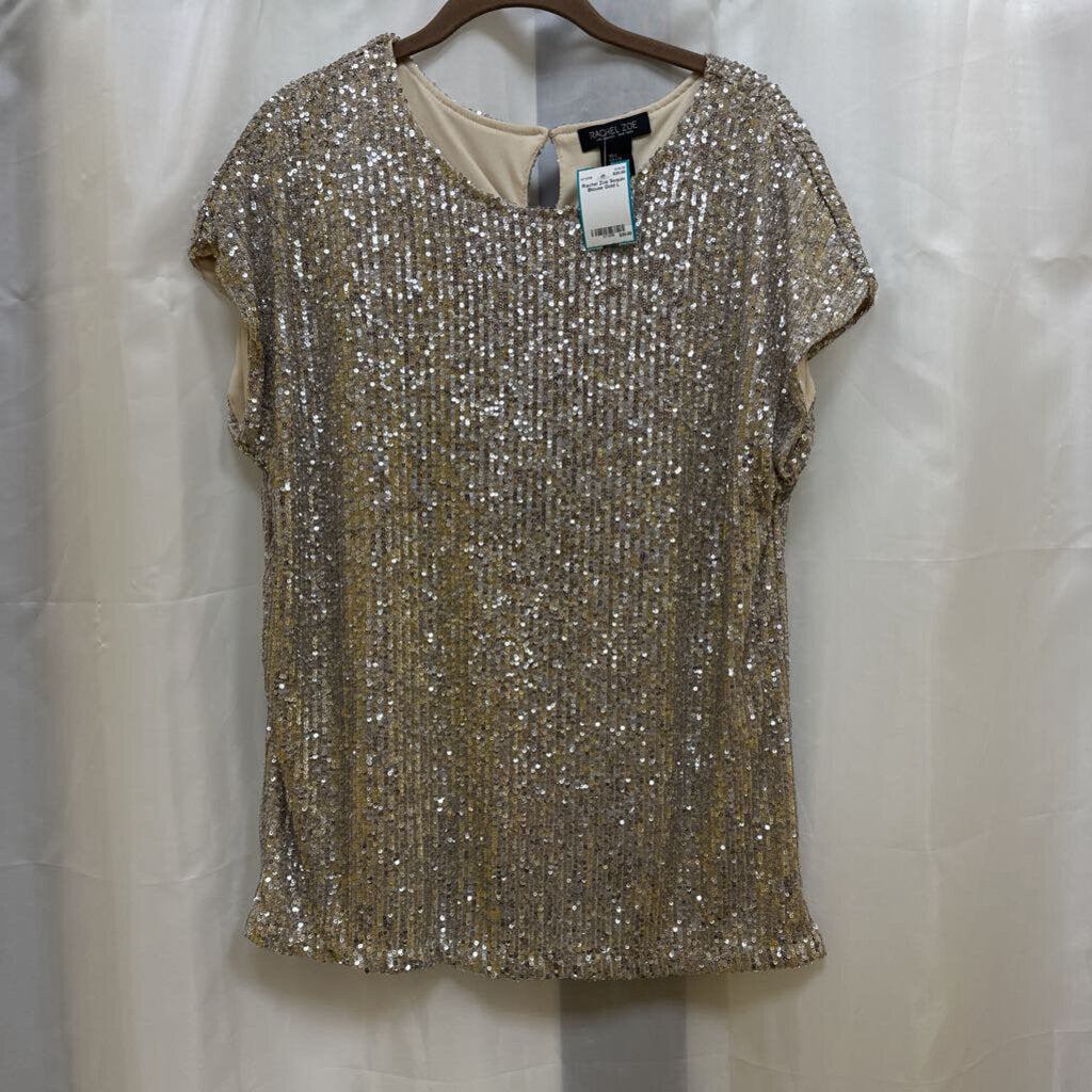 Rachel Zoe Sequin Blouse L Gold
