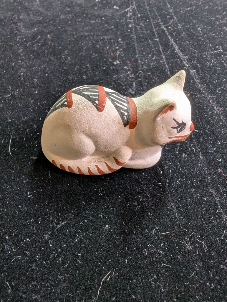Acoma Pueblo Native American Figurine 1.5" Long Beige w/Brown & Black