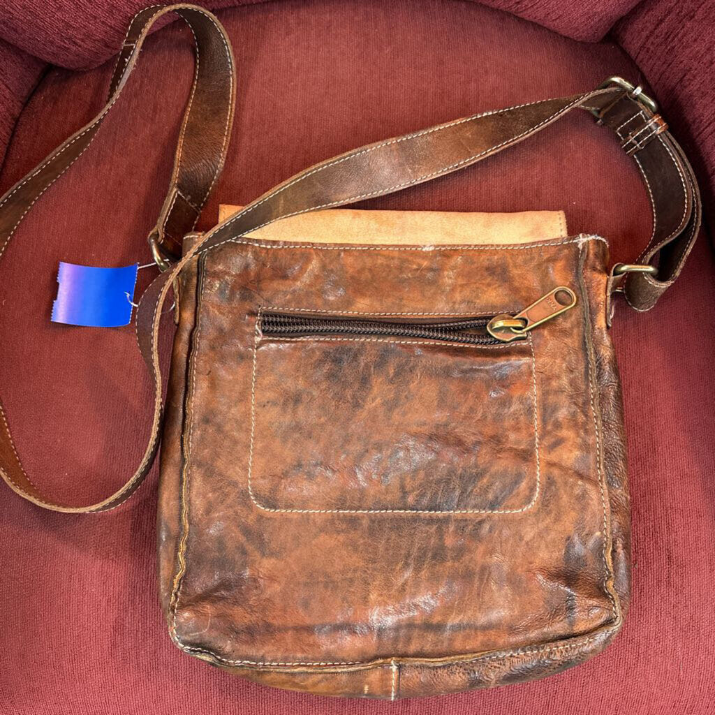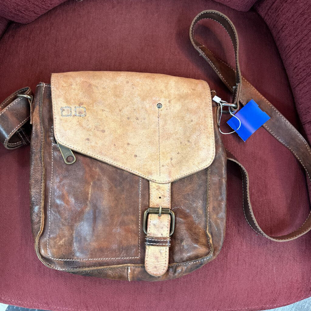 Bed Stu Venice Beach leather crossbody bag with flap front closure and adjustable strap.