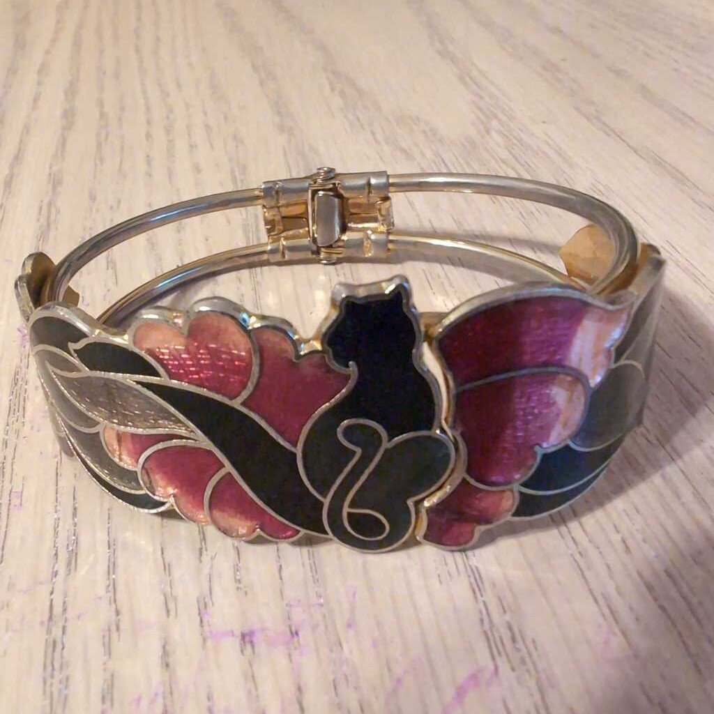 Cat Bangle Bracelet w/Hinge, Goldtone