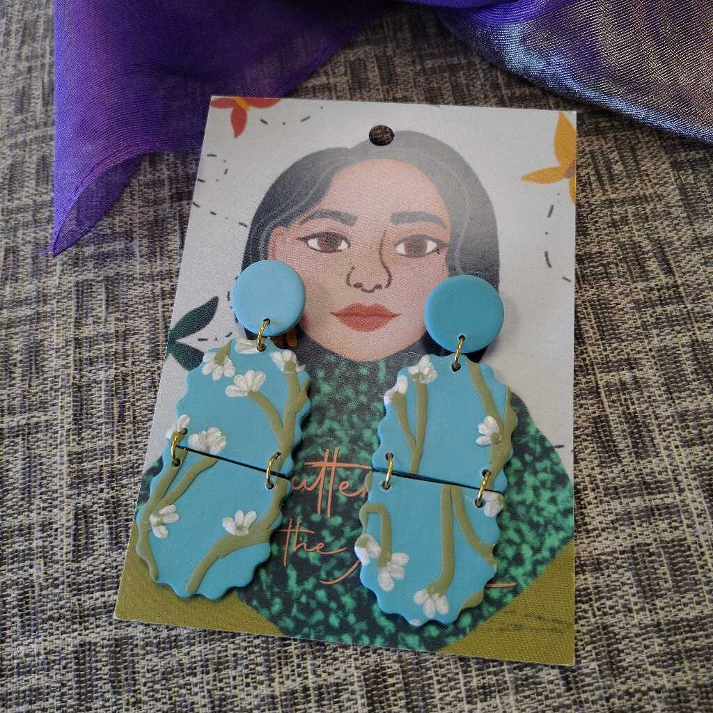 Butterflies by the Moon Dangle Earrings 3" x 1" Blue/green/white