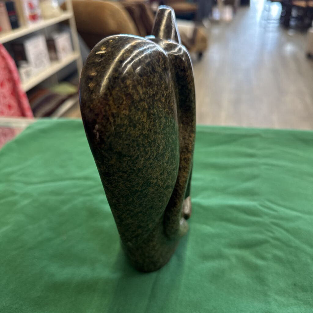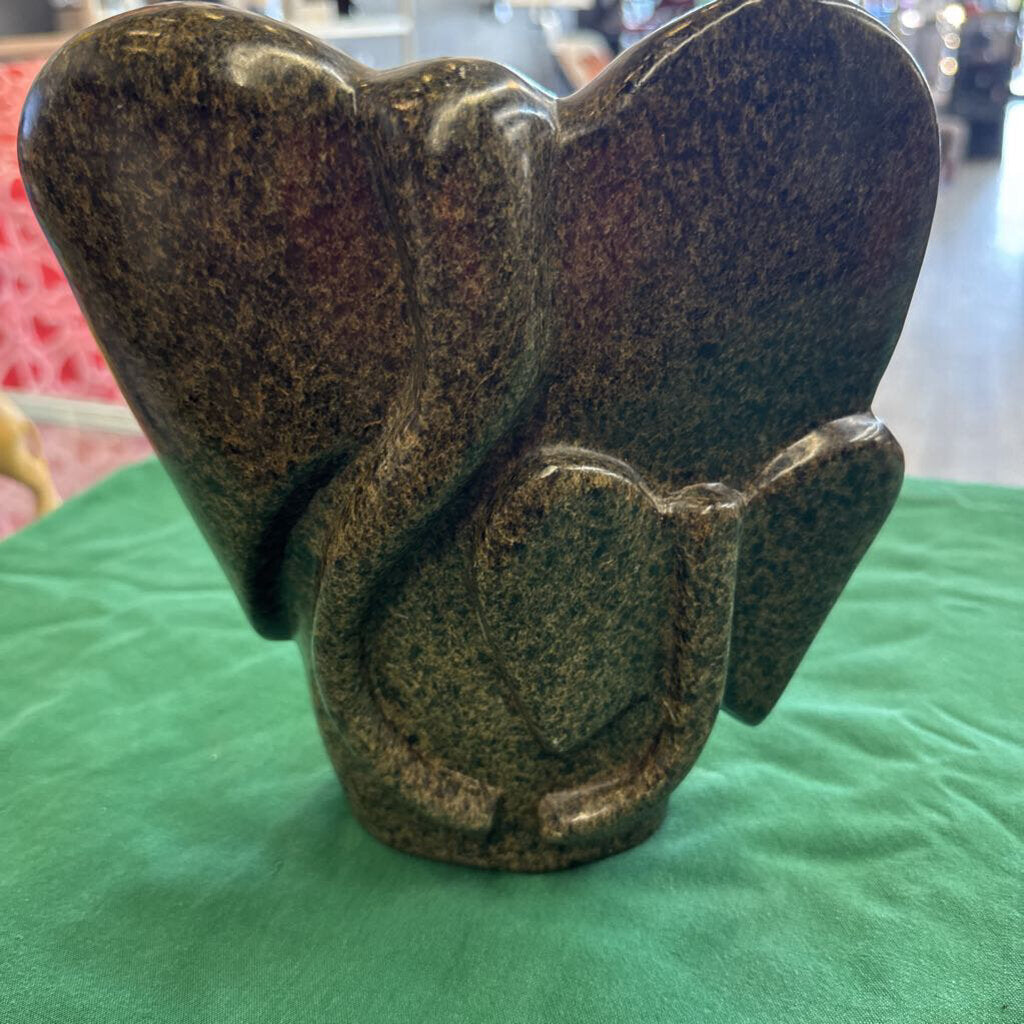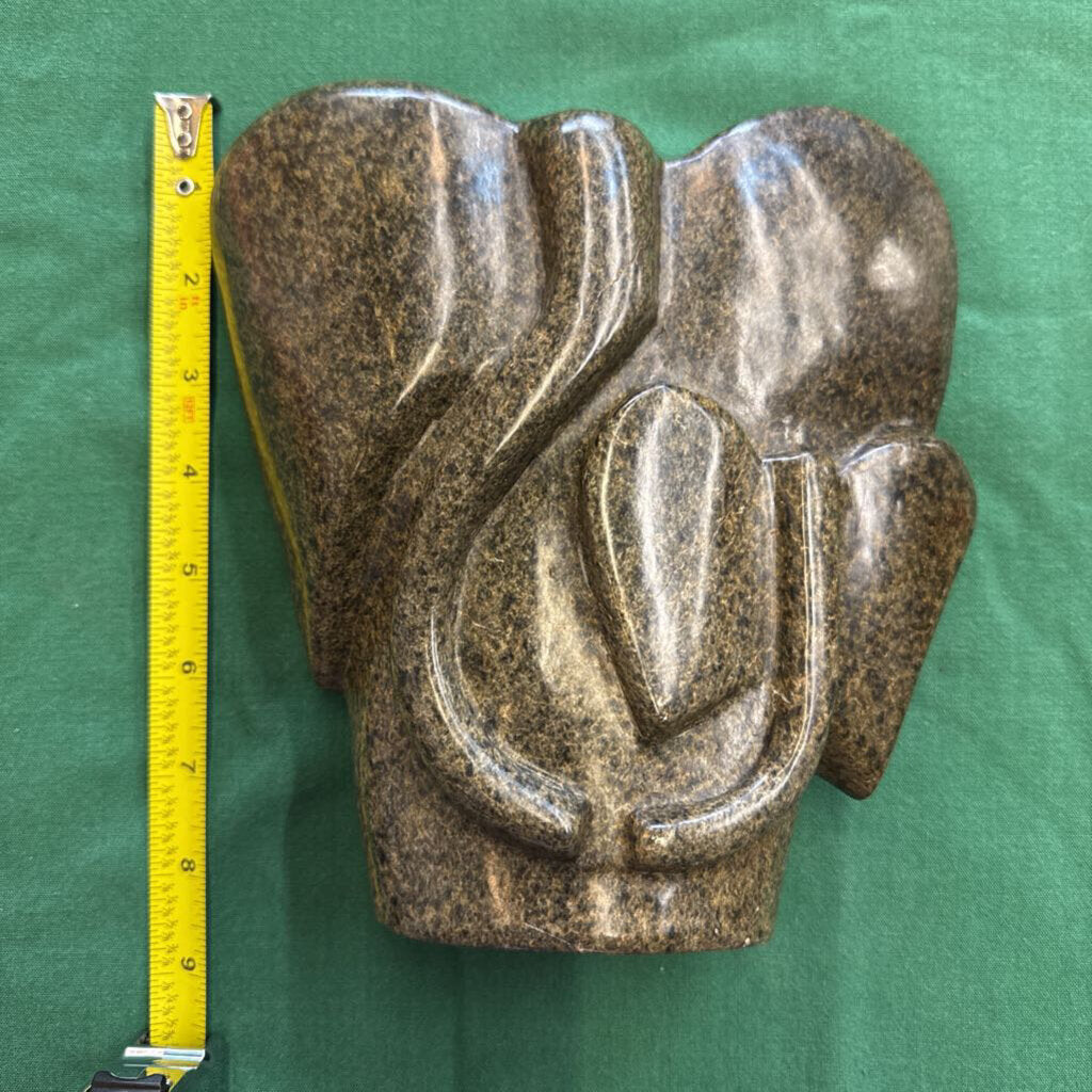 Carved Stone Elephant 8"w 2 1/2"d 8"h green grey