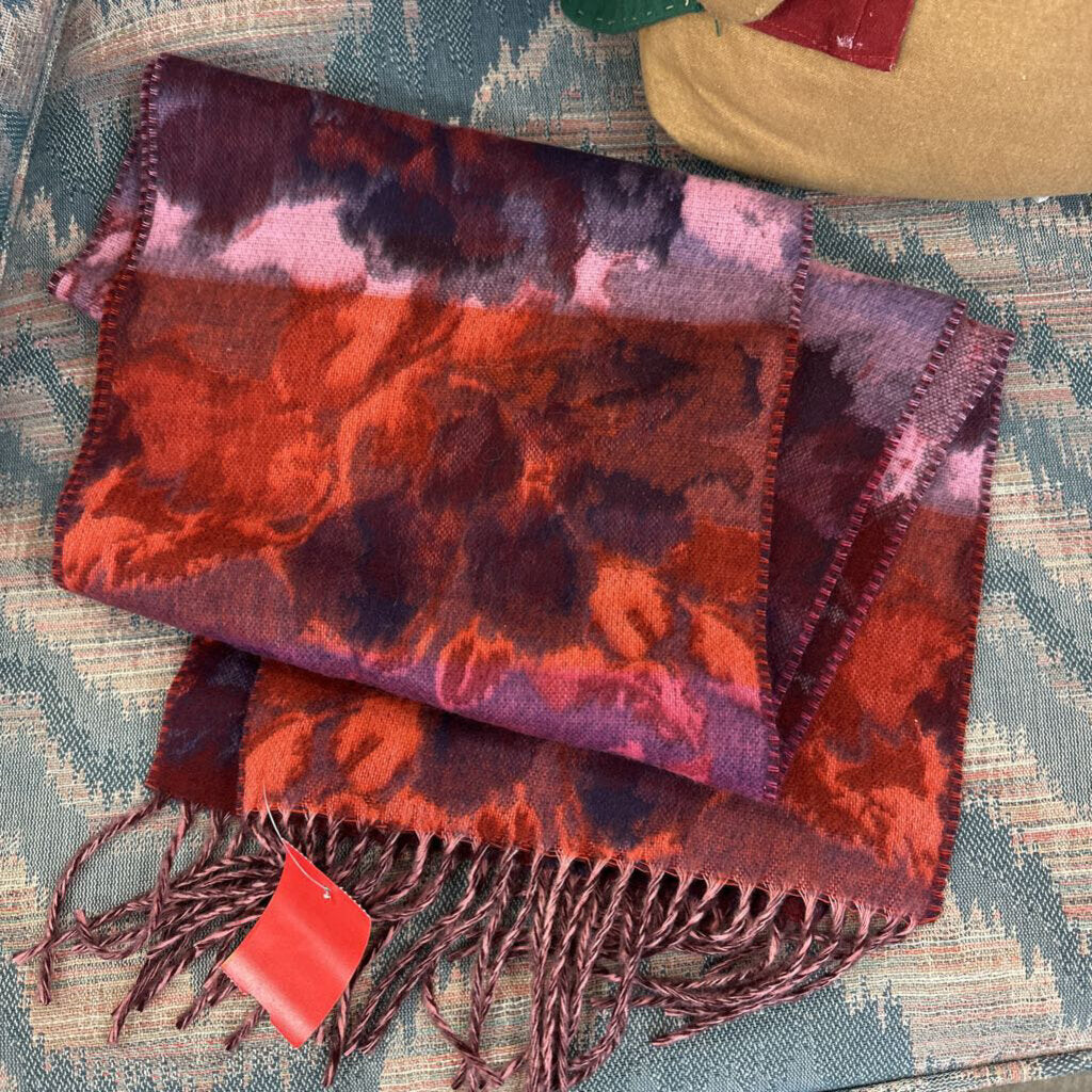 Winter floral stripe scarf with self fringe ends. New with tags.