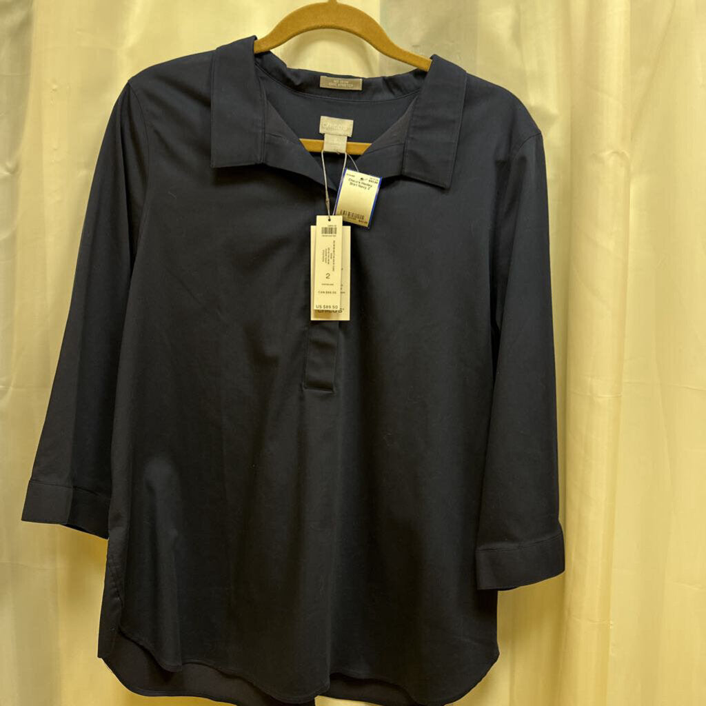 3/4 sleeve stretch cotton pull over Henley style shirt with hidden placket neckline and collar. New with tags.