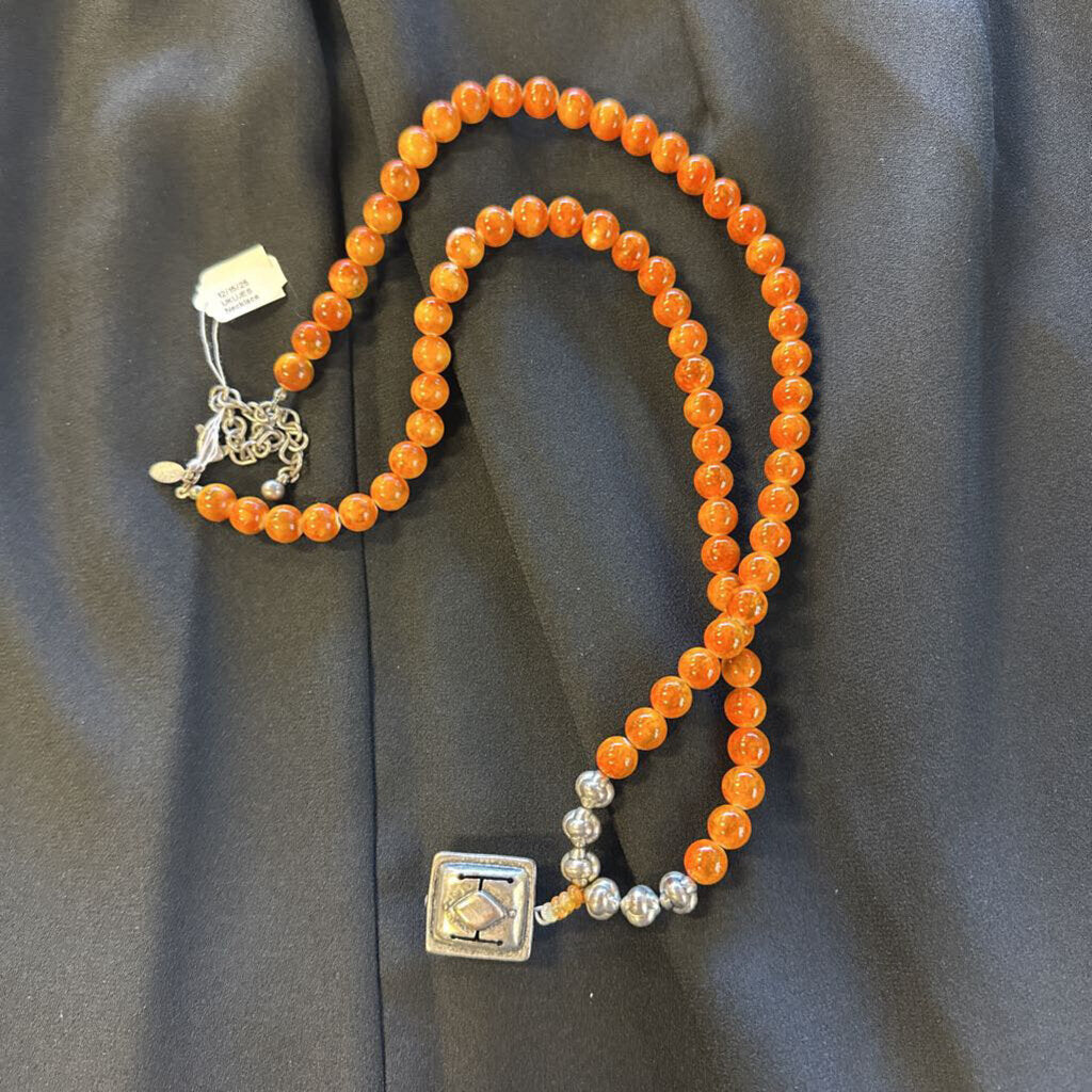 Chico's Necklace 36" Orange and Silver