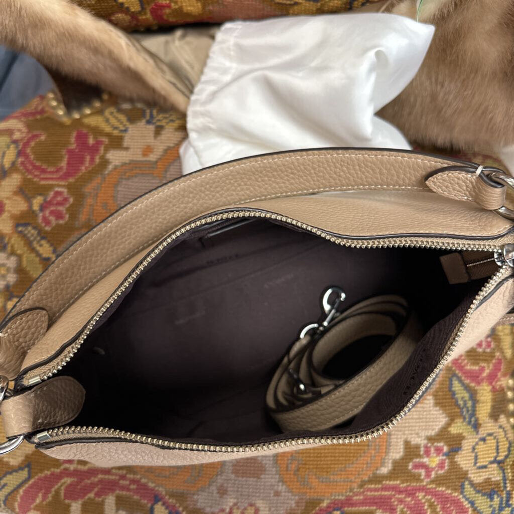 Coach soft taupe leather Shay Satchel/ Shoulder/ Crossbody bag with dust bag and crossbody strap inside.