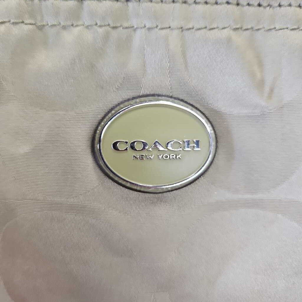 Signature nylon weekender large tote bag by Coach with leather trim handles.