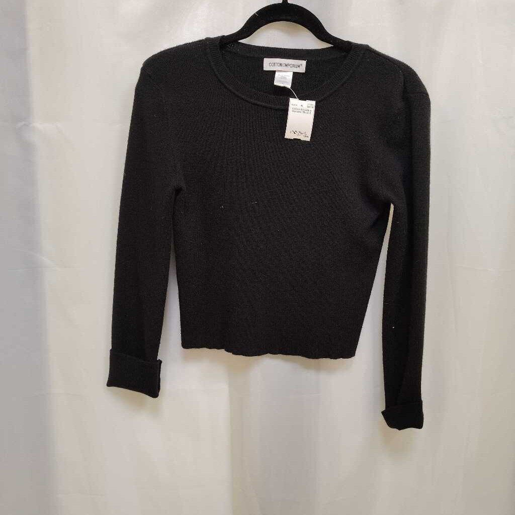 3/4 sleeve crop rib knitted pull over sweater with scoop neckline.