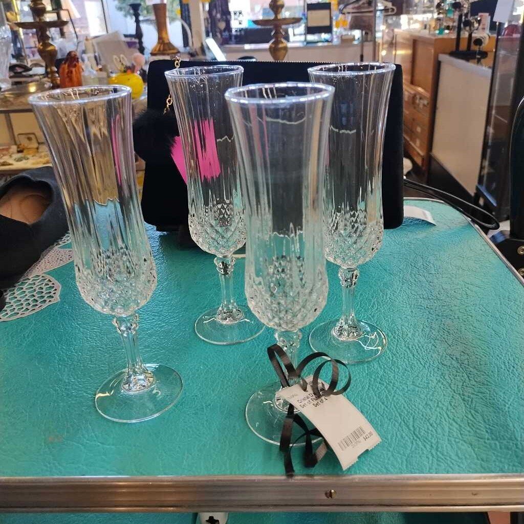 Cristal D Arques Longchamp flutes, set of 4.