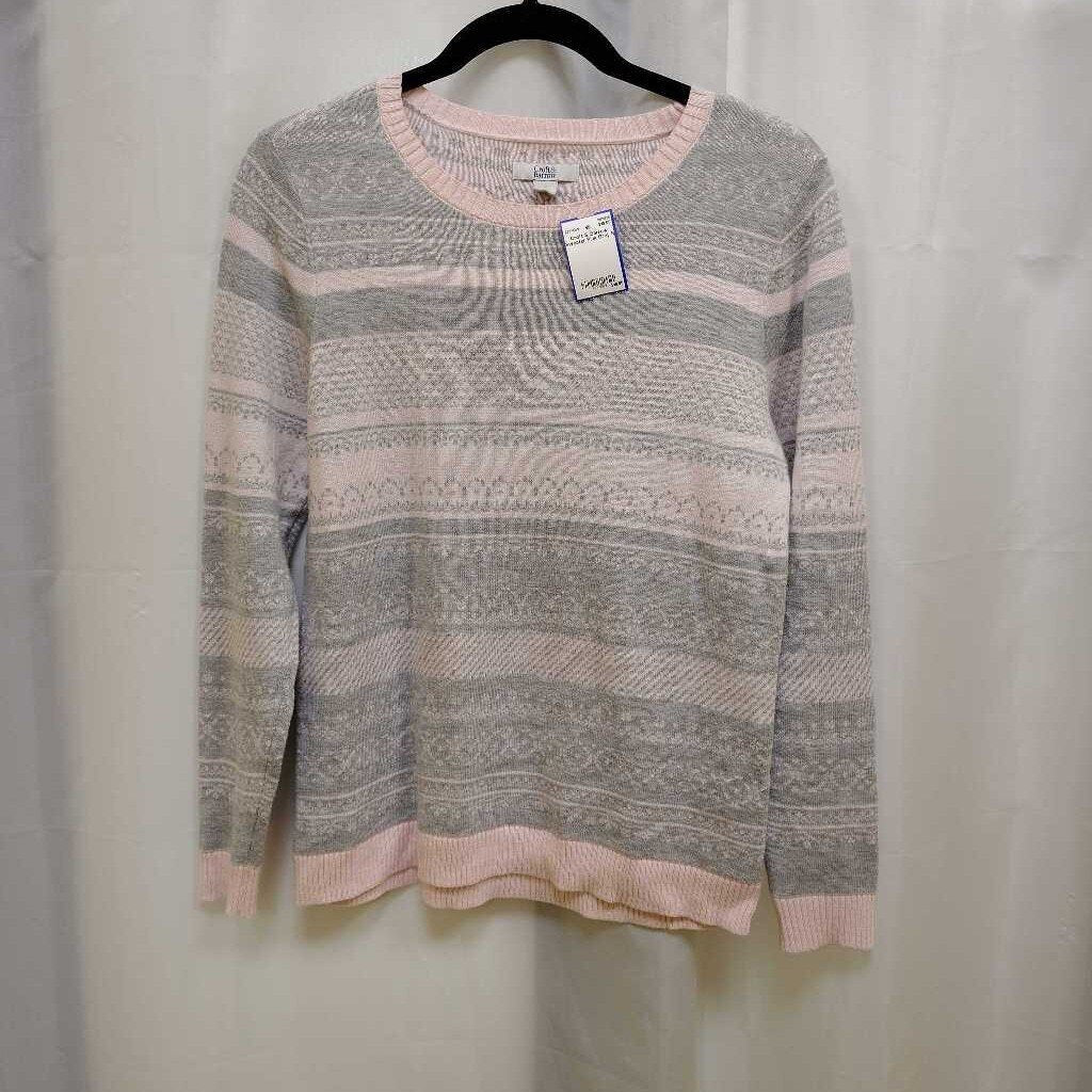 Long sleeve knitted pull over stripe sweater with scoop neckline.