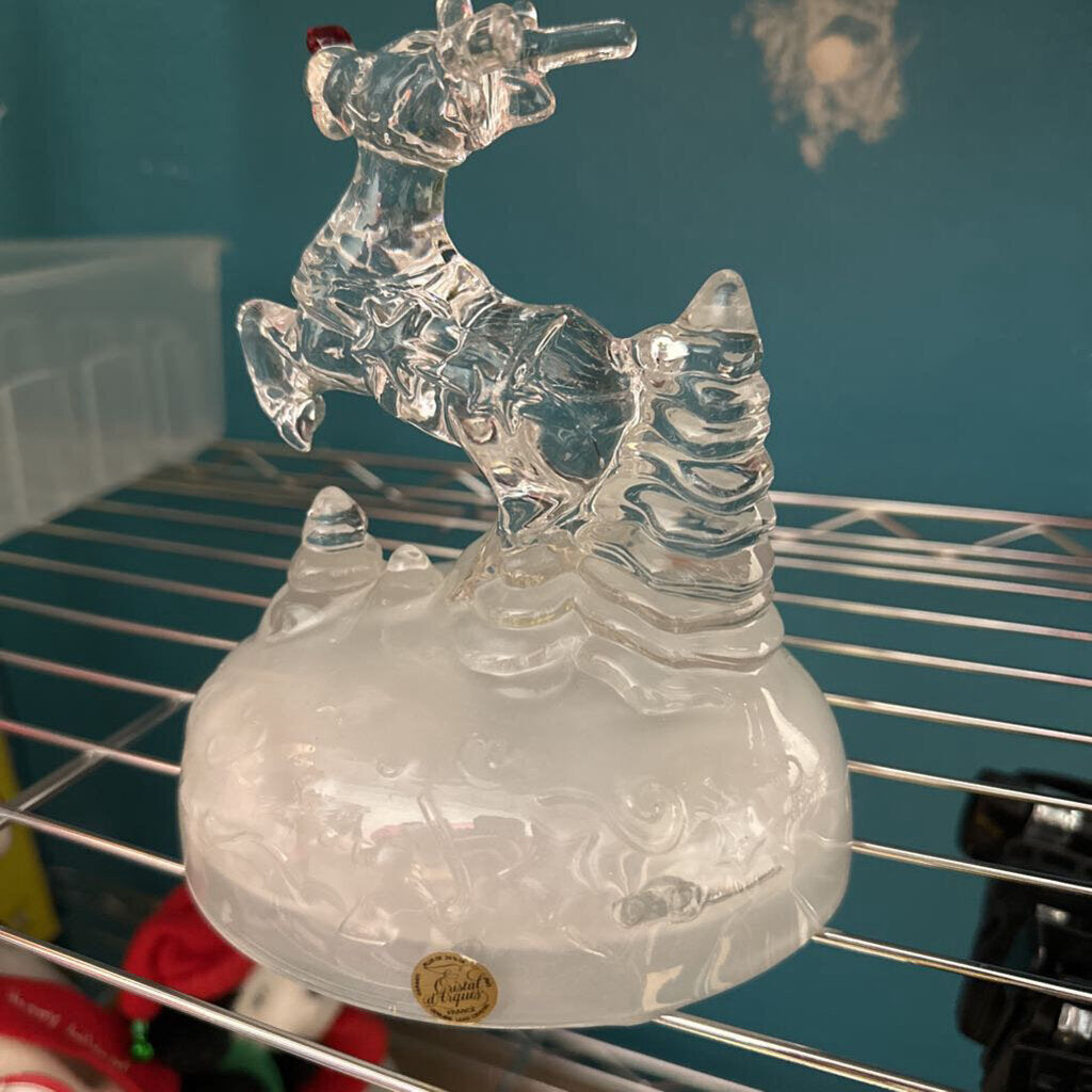 Crystal D Arques Glass musical Rudolph 7" x 5" Clear and red