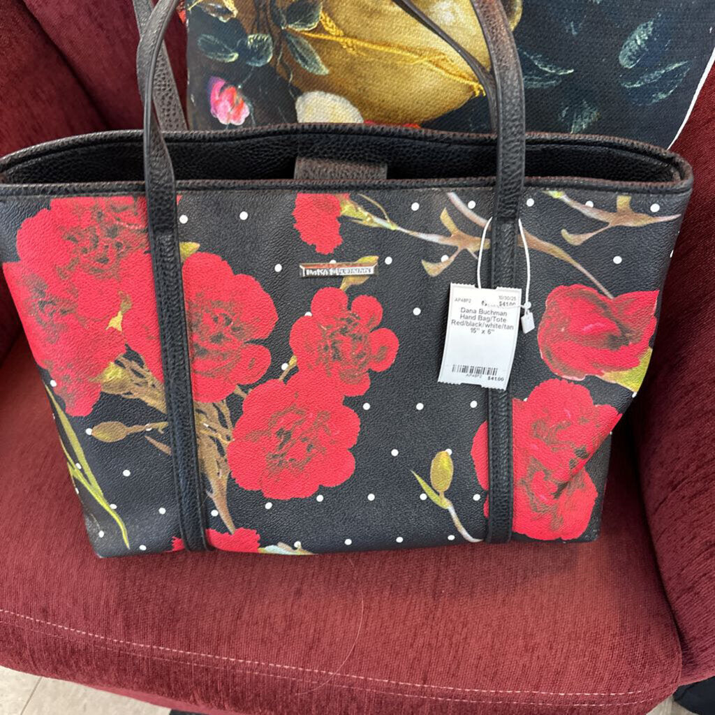 Dana Buchman Hand Bag/Tote 15" x 6" Red/black/white/tan