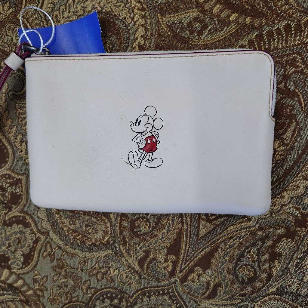 Coach limited edition Disney with Mickey Mouse smooth leather zip top wristlet, dog chain logo missing, sold as is.