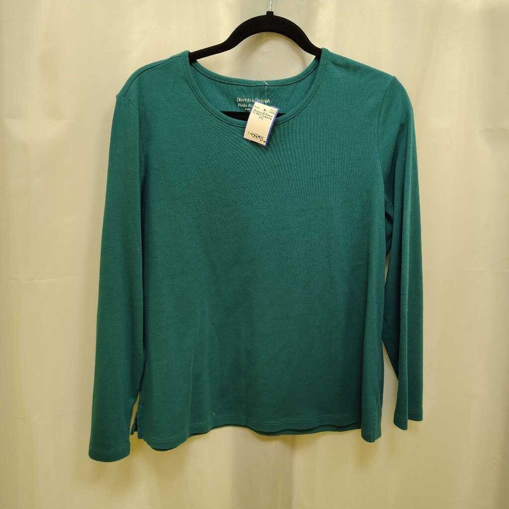 Long sleeve solid pull over knit t- shirt with scoop neckline.