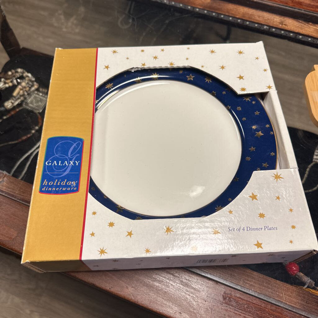 Boxed set of 4-white with blue and gold stars around rim