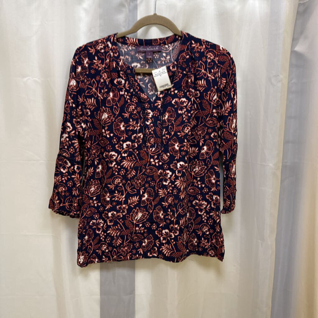 Gloria Vanderbilt Blouse S Navy Orange