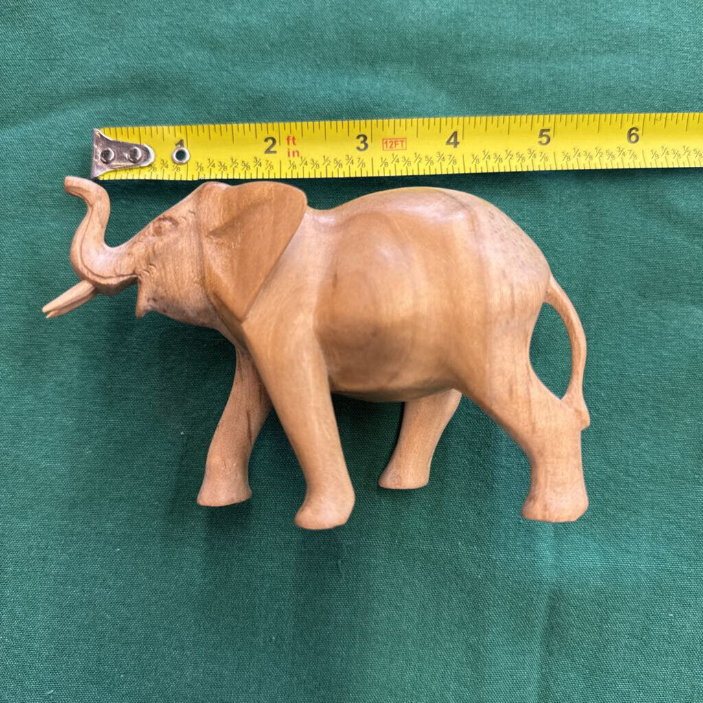 Hand carved elephant 5"l 2 1/2"w 3"h natural wood