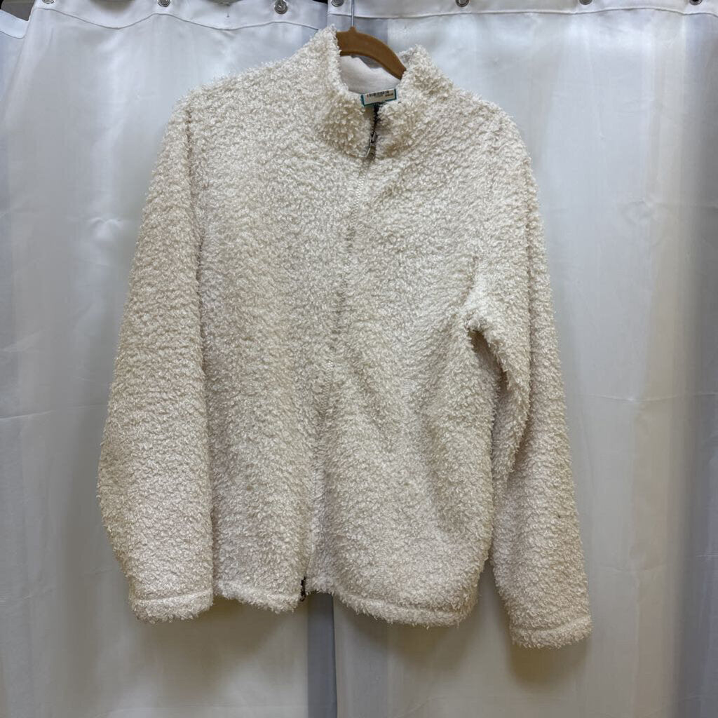 Long sleeve waist length zip front with side pockets , fuzzy like texture